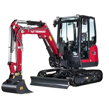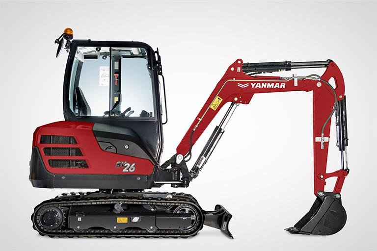 Yanmar SV26 är en kompakt och bandburen minigrävare med en arbetsvikt på cirka 2 700 kg, utrustad med tiltrotator och snabbfäste S40. Maskinen har en sluten hytt, ett ViPPS-hydraulsystem för smidiga och samtidiga rörelser samt en dieselmotor på 17,6 kW som uppfyller EU steg 3A. Den är konstruerad för stabilitet, låg bränsleförbrukning och god förarkomfort. Ljudnivån i hytten är uppmätt till 76–80 dB(A) och maskinen är CE-märkt enligt gällande säkerhetsdirektiv.