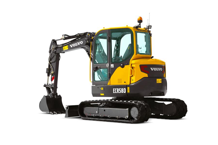 Volvo ECR58D är en kompakt grävmaskin med kort svängradie, anpassad för arbete i trånga utrymmen. Den har en arbetsvikt på cirka 5 800 kg och drivs av en 35 kW dieselmotor som uppfyller utsläppskraven enligt Tier 4f. Maskinen är utrustad med ett hydraulsystem som automatiskt anpassar kraften efter behov, vilket ger jämnare rörelser och sparar bränsle.