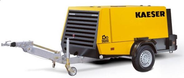 Kompressor på hjul, förbränningsmotordriven. Arbetstryck 7 bar. Fri avgiven luftmängd ca 12 m³/min.