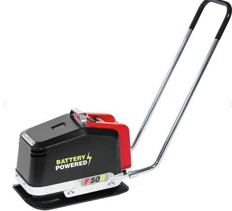 F 50B är en kompakt och tystgående vibratorplatta som drivs av ett 24V batteri och en 700 W elmotor. Den är avsedd för mindre packningsarbeten på ytor som gångvägar, trädgårdar och plattläggning.