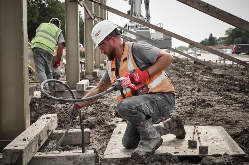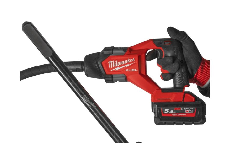 En betongvibrator för konsolidering av betong med en kompakt design och Milwaukees M18 FUEL-teknologi. Med 1,2 m skaft, rekommenderas för mindre plattor.