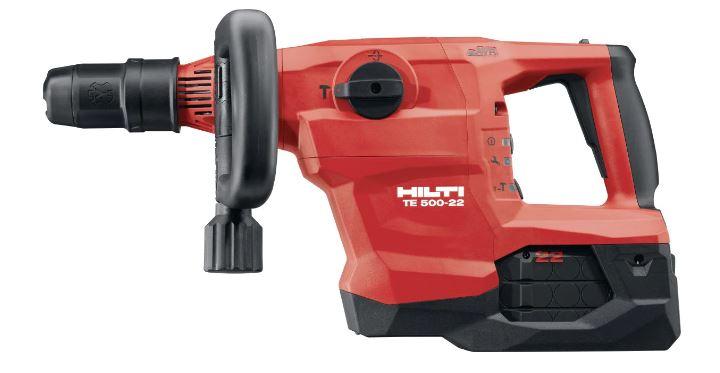Hilti TE 500-A22 är en batteridriven bilningsmaskin med SDS Max-fäste (TE-Y), särskilt utvecklad för rivning och bilning i betong och murverk. Den är en del av Hiltis Nuron-plattform, vilket innebär förbättrad batteriprestanda och längre drifttid utan att kompromissa med kraften. Maskinen är utrustad med aktiv vibrationsreducering (AVR), vilket ger hög arbetskomfort och minskar belastningen vid längre användning. Arbetsriktningen är främst vertikal, vilket gör den särskilt lämpad för väggar.