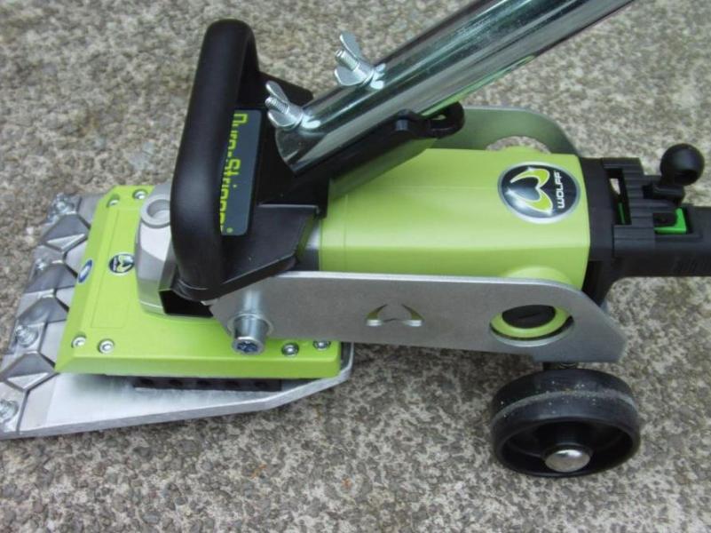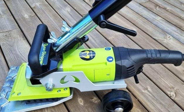 Handhållen mattstripper med långt handtag för borttagning av fastlimmade golvbeläggningar. Arbetsbredd 20 cm. Vikt 10 kg.