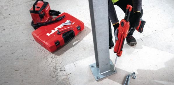 - Injektering av Hilti HIT epoxi- eller injekteringsmassa för att fästa ankarstänger och armeringsjärn i betong och murverk