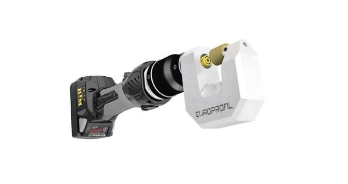Batteridriven utrustning för snabbt, tyst och ergonomiskt sammanfogning av förstärknings- eller ytterväggsprofiler över 70 mm bredd. Max plåttjocklek 2 x 1,5 mm.