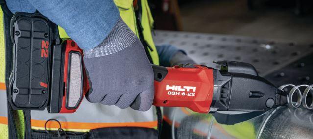- Kapning av stålplåt av mjukstål eller förzinkad stålplåt samt profiler med en tjocklek på upp till 2,5 mm – Hilti SSH CS-klingor rekommenderas (flera versioner finns)