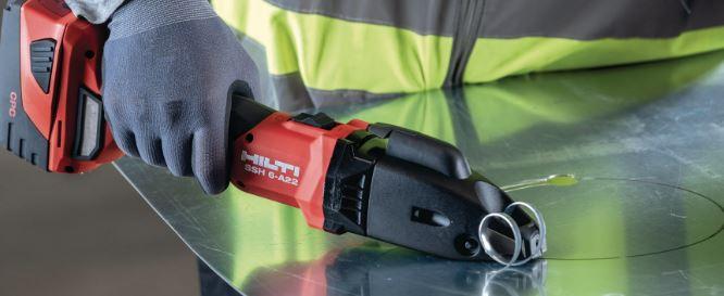 Batteridriven plåtsax för snabb eller böjd kapning i plåt, spirorör och annan vanlig kapning i metall upp till 2,5 mm