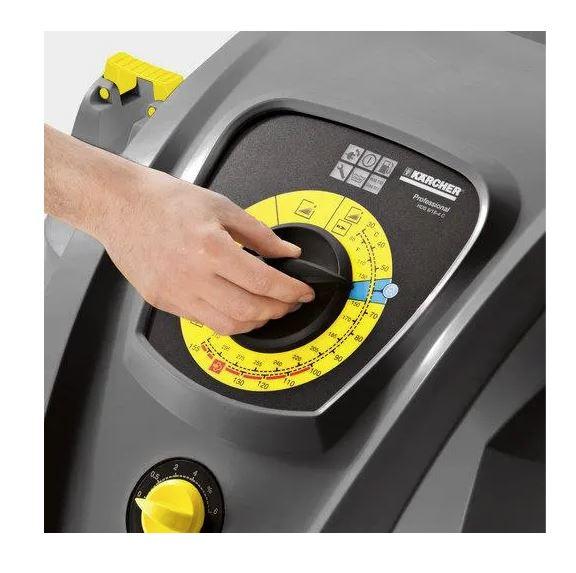 Hetvattentvätt med ångsteg. När inte kallvatten räcker för rengöring ställer man enkelt om maskinen till hetvatten. För borttagning av fetavlagringar, olja, tjära mm.