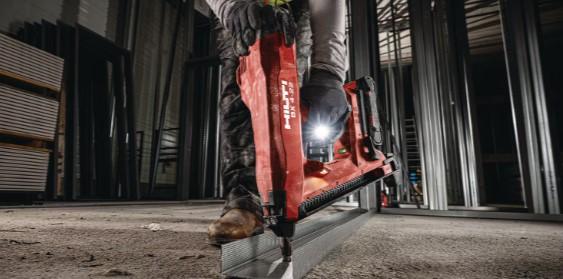 Nuron batteridriven spikpistol för infästning av innerväggsskenor och lätta material mot betong, stål och murverk