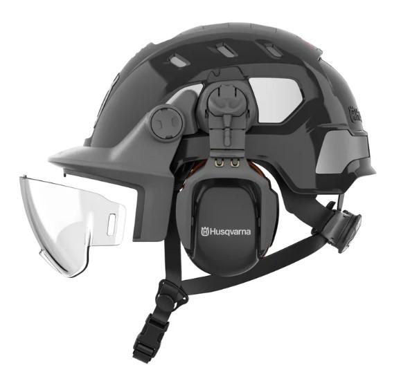 Den här unika hjälmen är en del av skyddsutrustningen för handhållen kapning inom SmartGuard™-familjen. Den är utrustad med hakskydd, vilket kan minska risken på hur allvarliga skador från klingan blir vid ett kast. Hjälmen är tålig men samtidigt lätt och väl ventilerad för maximal bekvämlighet. Den har en universal passform och en rattjustering för enkel justering av storleken. Även utrustad med hörselkåpor och visir.