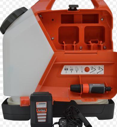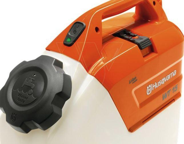 En kompakt och lättanvänd 15-liters vattentank som gör arbetet effektivt. Den har en elektrisk pump, vilket betyder att det inte krävs någon manuell pumpning. WT 15 är batteridriven med 18,5 V Gardena Li-Ion ackumulatorsystem.