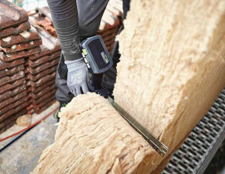 - Tillsågning av flexibla isoleringsmaterial som glasull, stenull och naturfiber (sågblad med vågformade tänder)