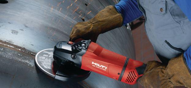 Vinkelslip på 2700 W med dödmansgrepp, vridbart grepp och broms, klarar skivor upp till 230 mm