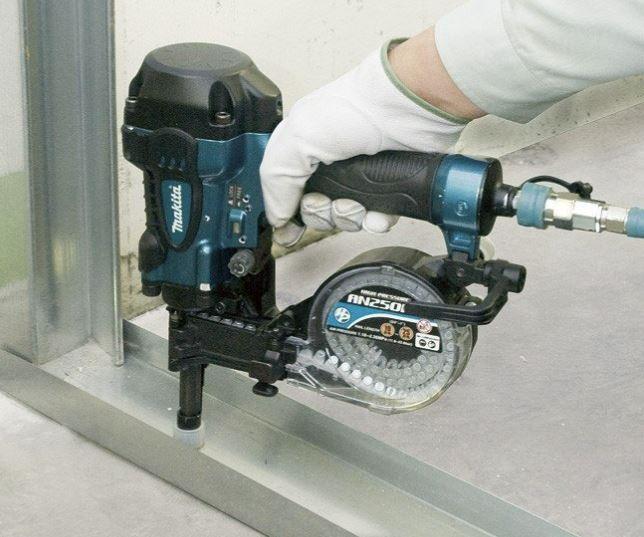 Kompressormatad High Pressure spikpistol som är specialutvecklad till montering i material i betong såsom gipsskenor mm. Lätt och händig maskin med stor slagkraft. Gummigrepp för hög ergonomi. Smal näsa – endast 19 mm. Gummikanter skyddar mot repor och skador. Roterbar bälteskrok.