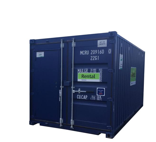 Ett 20-fots standardförråd avsett för förvaring och arbete året om.