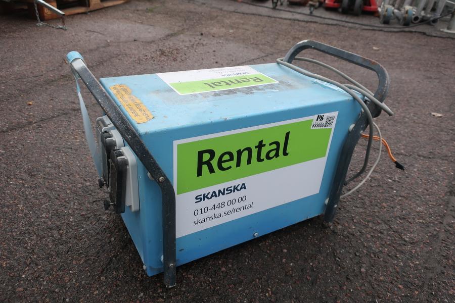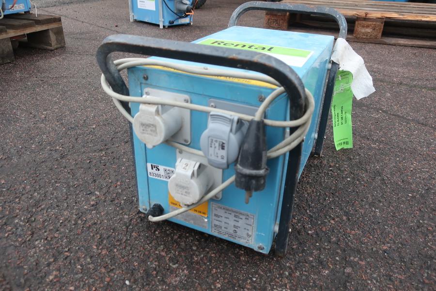 Belysningstransformator för allmänbelysning på byggplats, 48V. Uttag för 3 slingor. Effekt ca 1,5 kVA. Elanslutning 230V/1-fas.