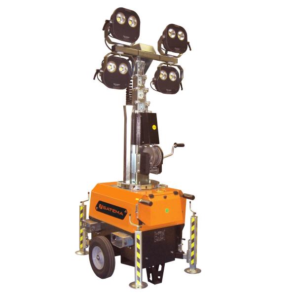 Masten lyser upp en yta på ca 2400 m². Lämplig för både inom och utomhusbruk. Mekanisk nödbroms för mastsektionerna