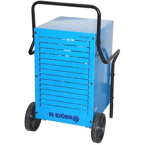 Avfuktningsaggregat. Vattenupptagning 30-50 l/dygn beroende på temperatur och luftfuktighet. För avfuktning i bostäder, tvättstugor, byggarbetsplatser, vid vattenskador mm. Spänning 230V/10A. Med inbyggd pump.