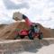 Maskinen levereras med både pallgaffel och skopa.