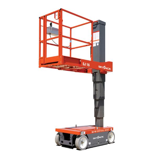 Skyjack SJ16 är en elektriskt driven pelarlift med kompakt design, låg svängradie, låg markbelastning och utsläppsfri drift, vilket gör den till ett smidigt och effektivt verktyg som passar för många olika typer av inomhusmiljöer.