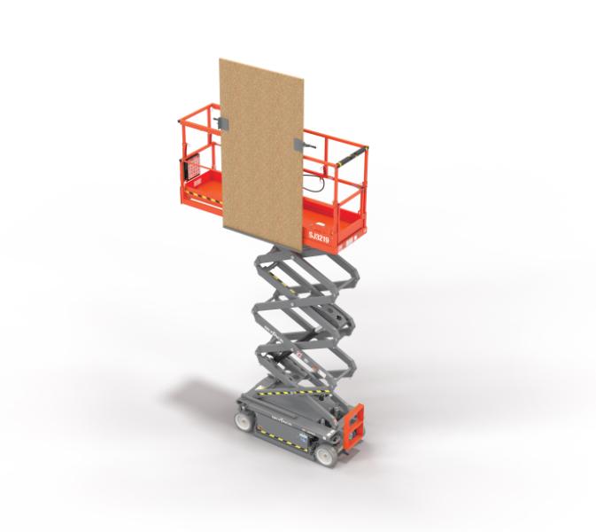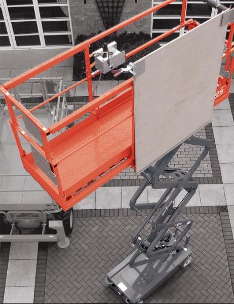 Det monteras på plattformens hemsida och möjliggör transport av skivor upp till full höjd. Eftersom lasten placeras utanför liftens centrum är det viktigt att beakta att tyngdpunkten förskjuts, vilket kan påverka stabiliteten.
