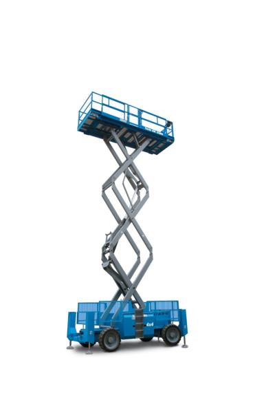 Genie 2669 RT är en kraftfull saxlift med fyrhjulsdrift och stödben, anpassad för tuffa arbetsmiljöer utomhus. Liften har en arbetshöjd på 10 meter och en maximal plattformshöjd på 8 meter, med möjlighet att köras upp till 7.92 meter. Den klarar en maxlast på 680 kg i korgen och 136 kg i plattformsutskjutet, vilket gör den lämplig för tungt arbete med flera användare och utrustning.