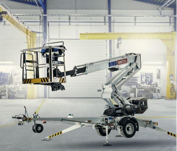 DINO 160 XTB II är en batteridriven släpvagnslift som lämpar sig för arbete både inomhus och utomhus. Den erbjuder en arbetshöjd på 16 meter, en plattformshöjd på 14 meter och en horisontell räckvidd på upp till 9,1 meter.