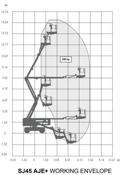 Liften har en arbetshöjd på 15,72 meter och en plattformshöjd på 13,72 meter. Den har en upp-och-över-räckvidd på 7,45 meter och en horisontell räckvidd på 6,93 meter. Plattformen rymmer två personer och har en maxkapacitet på 300 kg. Den är utrustad med en jibarm på 1,40 meter med ett rörelseomfång på +70° till -75° , samt plattformsrotation på 170°. Tornet roterar 355° icke-kontinuerligt, vilket ger god åtkomst runt maskinen.