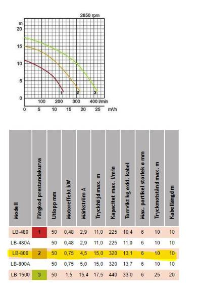 Länspump, dränkbar, motoreffekt < ca 1,2 kW