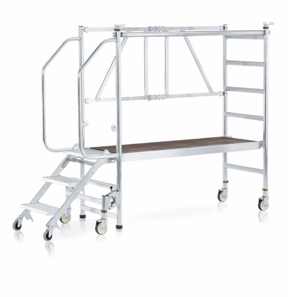 Trapphantverkställning med tre plattformshöjder/arbetshöjder: 420mm/2440mm, 720mm/2720mm, 1000mm/3000mm. Utrustning: 1 st plattform, 1 st horisontalstag.