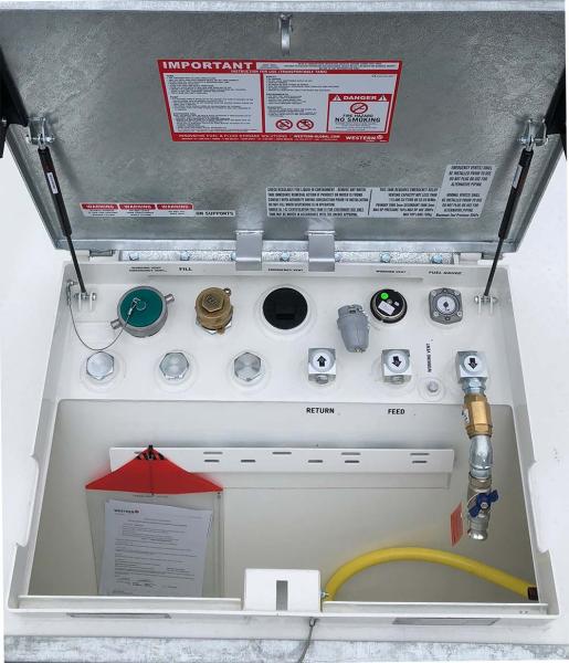 Tanken är utrustad med en fyravägs gaffellyftram och lyftöglor för enkel hantering och transport, även när den är fylld. På ovansidan finns en manlucka med gummipackning som är säkrad med 16 skruvar, vilket möjliggör inspektion och underhåll av innertanken.